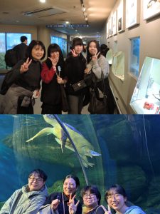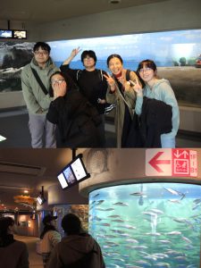 1年生が企画・準備をして2年生を送る会を催しました。 卒業を目前に控えた2年生に喜んでもらうために、2年生・1年生・校長先生、事務長、先生方 はグループに分かれて館内を見学し、さまざまな海の生き物を見ながら楽しい時間を過ごしました。 学生同士の交流も深まり、思い出に残るひとときとなりました。